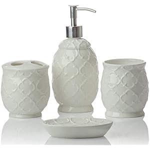 Designer 4-Piece Bathroom Accessory Set – Ceramic Bath Set w/ Liquid Soap or Lotion Dispenser, Toothbrush Holder…