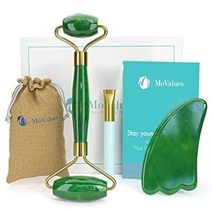 Original Jade Roller & Gua Sha Facial Tools, Real Jade Roller for Face – Face Roller, Natural Rose Quartz Roller – Face…