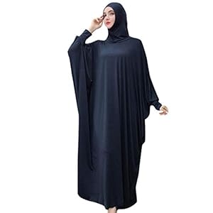 Muslim Women Solid Color Headgear Mosque bat Sleeve Robes Cardigan Ramadan Dress