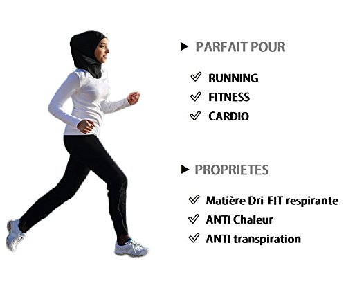 Indispensable scarf for Muslim women who want to practice sports without inconvenience. Made of Dry-Fit materials, the sporty and elegant design of ATTIQA sport hijabs permits you to enjoy comfortable sports activities thanks to its elastic material and lets you move freely. Its cap will also protect you from the sun. To be had in black and one size, this hijab has breathable properties and allows easy moisture evacuation, allowing you to practice a sport even as breathing and avoiding over the top heat. In truth, its fabric includes ventilation zones strategically positioned to allow air circulating and keep your head cool.