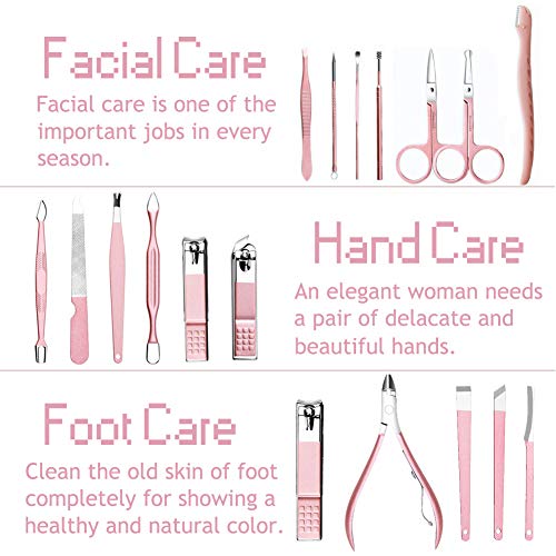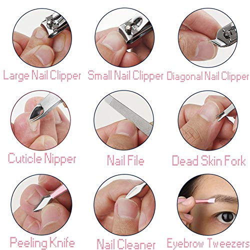 💝MULTI FUNCTIONAL SET: 18pcs nail clippers set can be utilized at manicuring, pedicuring, eyebrow shaping, anti-acne, exfoliating, etc. A set of practical nail kit to meet all of the needs of the face head and foot care. Perfect for men, women, girls, boys, seniors.