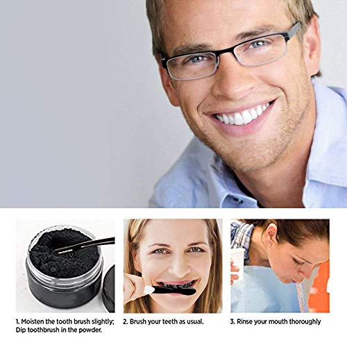 EASY TO USE: Relatively wet your toothbrush, dip powder, brush in small, gentle circles for 2 minutes, Brush your teeth with regular toothpaste to clean the black residual powder, in spite of everything rinse your mouth thoroughly