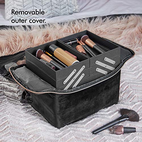 The bag itself features a water-resistant inner lining and a plush velvet finish on the outside – offering the perfect combination of practicality and style. The cover is completely removable for use without the internal tray structure. This makes it suitable for general use to store anything you need to take on your travels.
