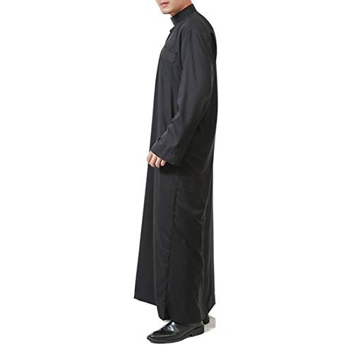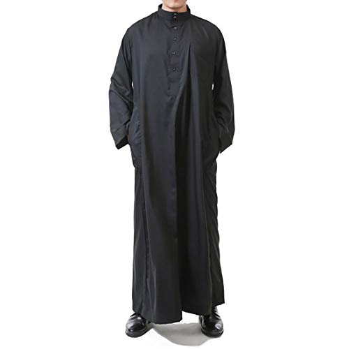 Muslim Men Thobe Dress has a chest pocket, simply design, solid color, long sleeve, mandarin neck, front botton down, full length beneath the ankles. To be had in several different colours and sizes.