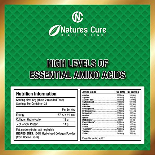 EASY TO DIGEST KOSHER AND HALAL CERTIFIED: Natures cure kosher collagen peptides is hydrolysed into small bioactive peptides For simple digestion and is absorbed by your body. Our collagen peptides is kosher and halal certified and GMO & Additive-free, suitable as a Paleo or Keto protein powder with high levels of the crucial amino acids needed for recovery.