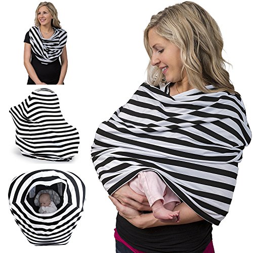 ✓ BE A PURE MOM: Be Prepared. Be Versatile. Do it in style. The Pure Mom Breastfeeding Scarf makes it easy, cleverly combining practicality and style. You can stand out in this classic design of Black and White stripes with a classy faux leather Pure Mom patch.