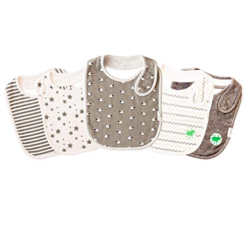 👶 GENTLE ON BABY – The softness of our premium cotton ensures these organic baby bibs are gentle when wiping even the most sensitive of skin. Say goodbye to wet and mucky clothes, these stylish baby bibs are made with ultra-soft 100% organic cotton on the front and an absorbent polyester towel backing – the perfect protection for baby’s clothes and skin.