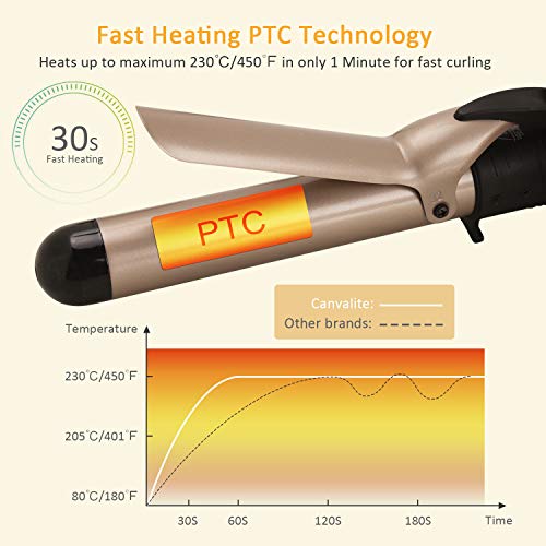 FOR ALL HAIRSTYLES & TYPES: Canvalite professional ceramic curling iron set includes 5 tourmaline ceramic barrels, different size curlers enable to style your hair in different style. 32mm for loose curls, 25mm for natural curls, 19mm for vintage waves, 19-25mm for body waves,conical 9-18 mm for small curls