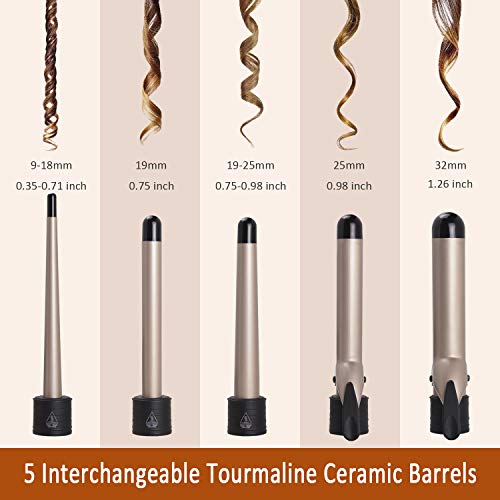 Canvalite Pro 5-In-1 Curling Iron and Curling Wand Set, Hair Waver With 5 Interchangeable Ceramic Tourmaline Barrels& Heat Resistant Glove
