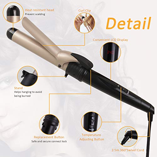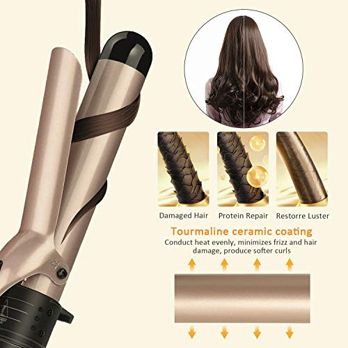 SAFE BUILD & OPERATION: Avoid scalding with plastic end cap on each barrels and included heat resistant glove, more convenient to operate when curling and great for beginner; Turns automatically off after 60 minutes for extra peace of mind