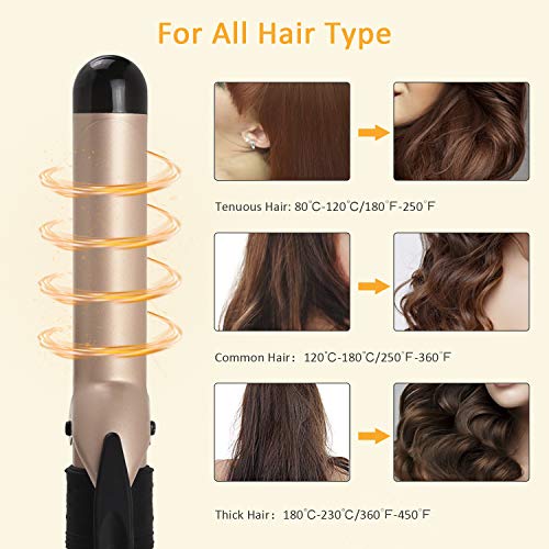 FAST HEATING PTC & CERAMIC COATING: With the professional ceramic tourmaline, the curling wand can produce a potent mass of negative ions to eliminate frizz and static electricity,help to make smooth and shiny hair style. It also heat up within 30 seconds, let you with quick styling in busy morning, save a huge time for you