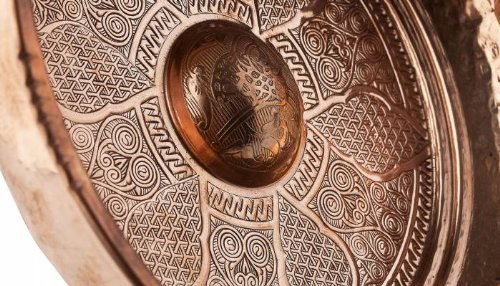 Hand hammered and carved copper with a conventional Ottoman layout.