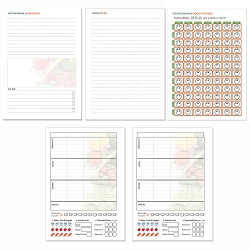 Activity and Exercise Tracker, Weight Chart, Mood Tracker, Shopping List Should Haves and Meal Planning Pages,