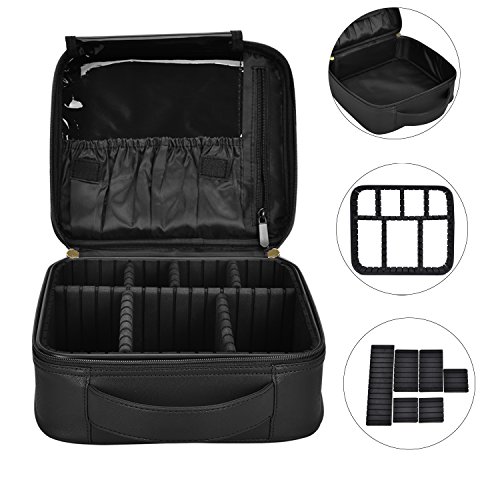 VERSATILE DESIGN. Dual golden zipper allows accessing conveniently. Adjusting the compartment by 3 padded removable dividers to fit your need and keep makeup essentials neatly in place, locate your makeup faster. Removable dividers are free to combine.