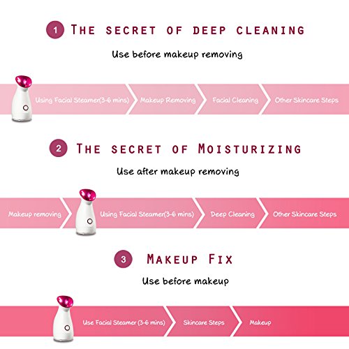 👩. Deeply Clean the Skin — Quickly and gently removes makeup, dirt and other impurities from the skin with deep-cleaning facial steamer moisture for a healthy, natural-having a look complexion.