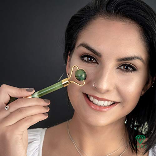✅ GENUINE JADE AND GREAT DESIGN: Our Jade Roller and Gua Sha Massager are made from 100% Natural Jade. They can come in beautiful varieties of natural jade tones, ranging from light, translucent green to nearly black; all full of natural earth energy. Our Jade Rollers are specifically designed for targeted use in the facial area. Super smooth with a clever dual headed design. The roller on one side is larger for wider surfaces of your face, while the other is smaller for your lip and eye areas.