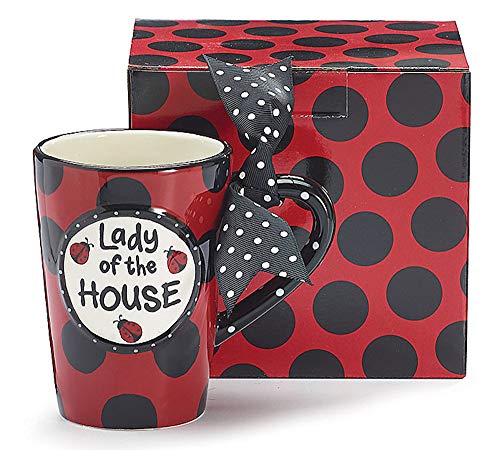 Hand-painted “Girl of the Area” ceramic mug accented with raised ladybug design. Every mug is personally gift boxed.