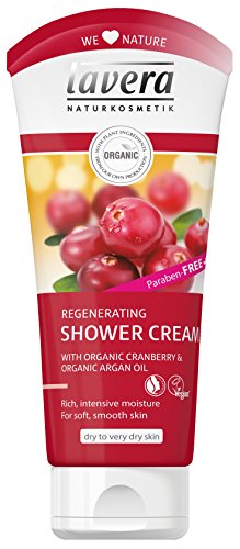 lavera Regenerating Shower Cream pampers dry to very dry skin with organic cranberry extract and valuable organic argon oil.