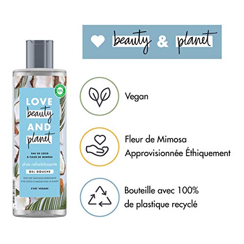 Discover the Refreshing Rain Shower Gel from Love Beauty & Planet for an full of life freshness & for gestures of love for the planet! Yes to beauty and pleasure! Give your skin a refreshing cocktail! With this refreshing rain shower gel from Love Beauty & Planet infused with natural coconut water and ethically sourced natural extract of Mimosa Flower, you’ll feel full of energy for your day. While you get out of the shower: moisturised, soft and delicately fragranced skin. Formulated with mild cleansing agents and a plant-based cleansing base, this shower gel gently washes your skin. It’s Vegan! Shower gel with 92% natural origin and 97% biodegradable. Yes to the planet! At Love Beauty and Planet, we wish our carbon footprint to be as small as imaginable with a view to preserve our beautiful planet to the most productive. For our formulas carefully crafted and loved, we use bottles with 100% recycled plastic and which are 100% recyclable. Our subtle fragrances are infused with ethically sourced natural extracts and oils. The way to use without surprise, apply, lather and rinse. Small gesture of love for the planet: Do not let water glide for a very long time.