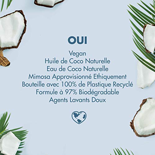 YES shower gel with 92% natural coconut water and Mimosa flower.