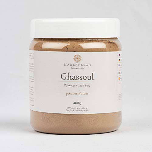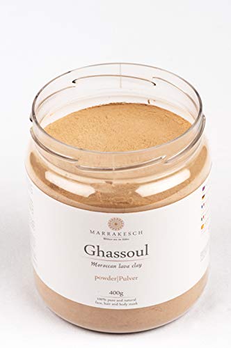 Marrakesch Rhassoul clay is traditionally processed, dried within the air and within the sun after which finely ground, Used for hair and body cleansing, hair remedy, exfoliation and mask, Ideal product for people with allergies, baby and child care, also as a bathwater additive or for the remedy of skin diseases such as acne, inflammation, itching.