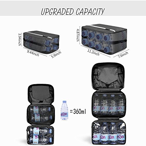 COMPACT DESIGN WITH LARGE CAPACITY: Upgraded size of 11.2″x4.87″x7.6″(6.8L), larger than most trip wash bags in the marketplace, enough space to pack all female and male toiletries in one place. This expandable case can hold 8x360ml bottle water with zipper closed but still slim enough to be packed into your carry-on trip case.