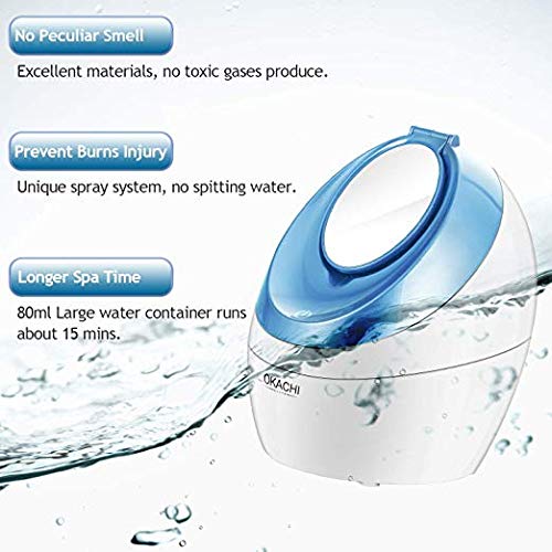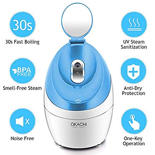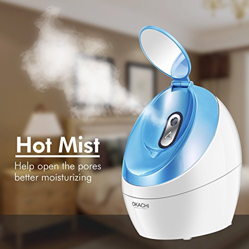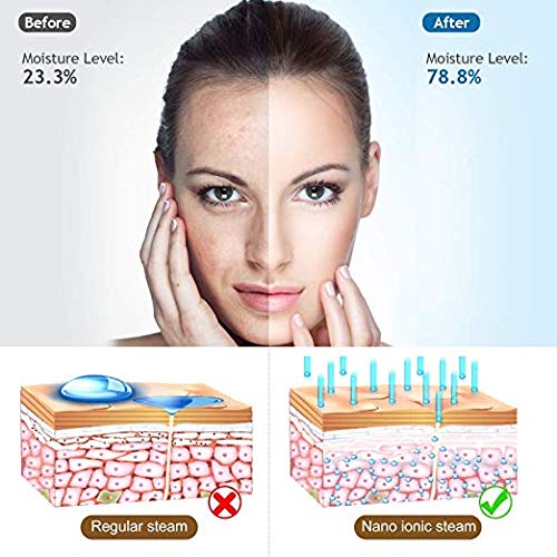 ★POWERFUL FACIAL STEAMS MASK: The facial steamer nozzle sprays strong, steady, wide and thick steams, covering entire face. Nano sized steams easily penetrate the skin barrier, moisturize skin more quickly and absorb nutritional essence more effectively. The inner skin is absorbed easily that make the cells more plump, let the skin more firm and delicate, the makeup is easier to apply and keep it for a very long time