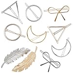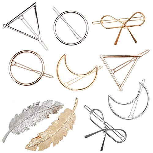Package: Comes with 10 pieces of hair clips. Leaf / Circle / Moon / Triangle / Butterfly clips shapes. Each style has 2 color (gold and silver)