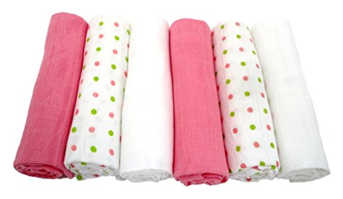 6 pack pink combo muslin squares. 70 x 70 cms