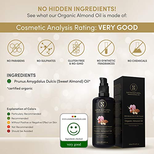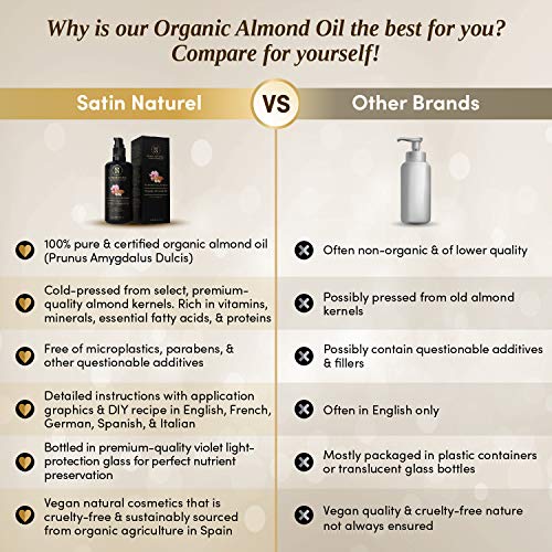 ✅ 100% SATISFACTION GUARANTEED: GET RESULTS or your money back! At Satin Naturel, we pledge ourselves to using sustainable and high-quality ingredients because we are driven by your satisfaction. If you don’t seem to be completely satisfied, we will be able to refund your money – without fuss or hassle! Opt for Satin Naturel – for your beauty and the love of our surroundings. Order the Organic Almond Oil now directly to the doorstep.