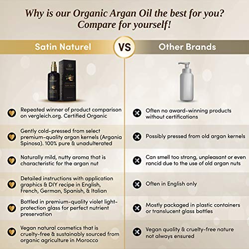✅ 100% SATISFACTION GUARANTEED: GET RESULTS or your money back! At Satin Naturel, we pledge ourselves to the use of sustainable and high-quality ingredients because we are driven by your satisfaction. If you are not completely satisfied, we will refund your money – without fuss or hassle! Opt for Satin Naturel – for your beauty and the love of our environment. Order the Organic Argan Oil now directly to your doorstep.