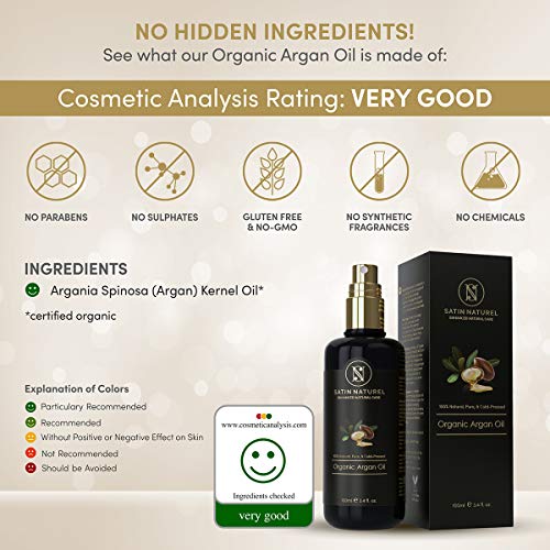 ✅ PURE, HIGH-QUALITY NATURE PRODUCT / CERTIFIED ORGANIC – Do you suffer from dry, flaky skin, brittle hair with split ends, or weak, splitting nails? Still have not found anything to relief your symptoms? Satin Naturel’s Organic Argan Oil is the perfect solution for all, who are in search of a sustainable, premium-quality moisture care product for their skin, hair, & nails. Gentle, effetive, and 100% natural.