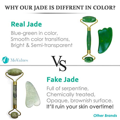 ✅REAL BRAZILIAN JADE: A Jade Stone Roller only works if it’s REAL deep green jade crystal, because only a real jade roller has the unique crystalline lattice that drives healing ions deep into your cells to boost circulation, smooth fine lines and to flush lymphatic waste and puffiness. And that’s why our Jade Facial Roller and Guasha Massage Tool are unique, and only made from pure, natural Brazilian Jade.