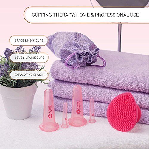 ULTIMATE KIT– This cupping set is all you wish to have to start your therapy. It includes 2 LARGE CUPS for face, neck and décolletage, 2 SMALL CUPS for under-eye area, lips and nasolabial fold. Also as a BONUS You are going to receive an EXFOLIATING FACIAL BRUSH which can be used daily for deep cleansing. The canvas drawstring bag will keep it all nice and tidy.