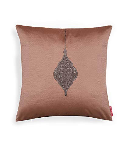 Traditional lantern design on starshinemocha cushion cover from Visual Dhikr. Superbly adorned with an intricately embroidered design by British artist Ruh Al-Alam; this cushion will bring sophistication and magnificence to any interior.