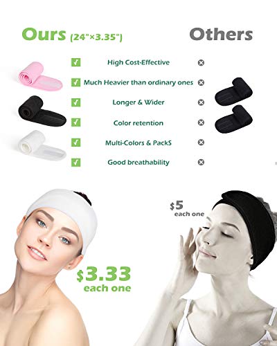 SOFTER,ABSORT EFFECTIVE HEAD HAIR HEADBANDS: Made of 100% polyester towel cloth of good quality , AwesomeWare facial headband head wraps can absorb any liquid quickly to keep forehead from getting wet when you do hair care. Thicker,softer and skin-friendly terry cloth headband makes you feel comfortable like wearing nothing.