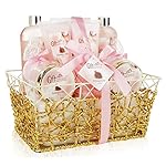 PRETTY GIFT BASKET: How can any person withstand this gorgeous bath and spa set gift basket? It comes with an adorable gold woven basket, so you’ll organize each and every item easily. Plus, the bath gift basket is so beautiful, it can serve as a decorative piece in the toilet or your bedroom.