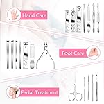 MULTIPLE FUNCTION 18 IN 1 GROOMING KIT: The function of most Nail clipping set is centered on trimming nails, and our set has a number of functions including hand care,foot care and facial remedy,each tool is elaborately made and can meet your a wide variety of care needs in daily life, one set in the hand,living at ease.