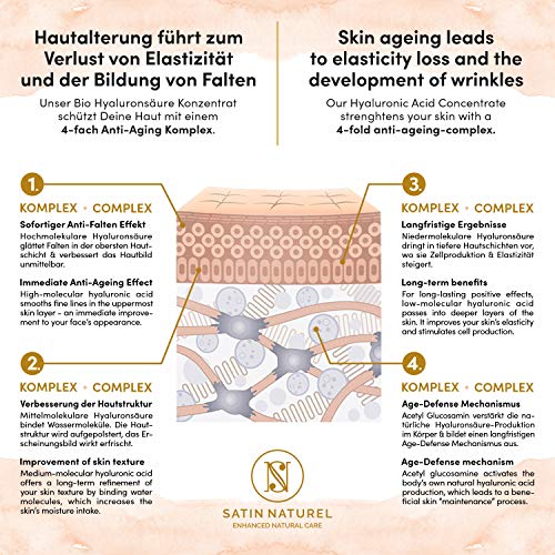✅ 100% SATISFACTION GUARANTEED: GET RESULTS or your money back! At Satin Naturel, we pledge ourselves to the use of sustainable and high-quality ingredients because we are driven by your satisfaction. If you are not completely satisfied, we will refund your money – without fuss or hassle! Choose Satin Naturel – for your beauty and the love of our environment. Order the Organic Hyaluronic Acid Concentrate now directly to your doorstep.