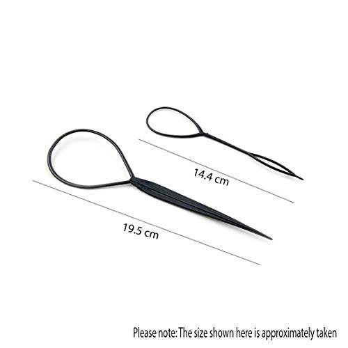 TOPSY TOOL FOR PONYTAIL: The hair braid topsy tool kit is comes in two pieces (big and small). Length of the big topsy tool is 19.5cm (approx.) and small tool has 14.4cm (approx.)