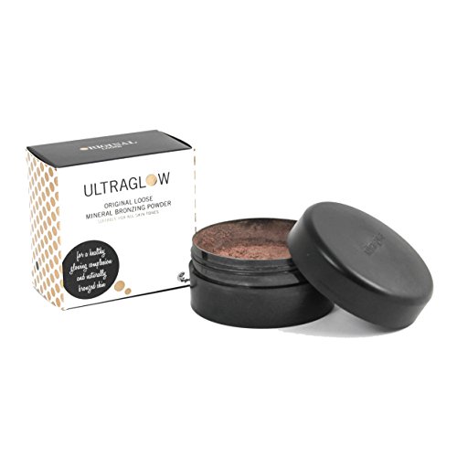 A beautiful microfine bronzer with unique mineral pigments blended with light reflective particles. Create a phenomenal bronzed look on your face and body with this original bronzing powder from ULTRAGLOW. Best applied with a bronzing powder brush. Use circular motions to build colour gently at the face or body. Watch the beautiful healthy look develop as you are applying. Exceptionally soft feel at the skin, and excellent staying power. Packaged in a traditional tub with an incredible wire mesh for simple application. Ultra Glow Original Loose Bronzing Powder is the unique multi functional bronzing makeup loved for over 30 years. That is the genuine product, totally unchanged from the one you’ve all the time used. Designed to be perfect for all purposes – use lighter quantities for daytime and use more for evening glamour. Our bronzing powders last and last which also makes them exceptional value. Made in England. Suitable for vegetarians.