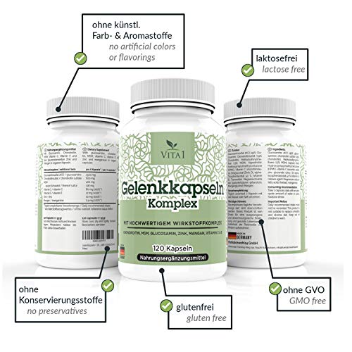 A good suggestion – VITA1 Joint Capsules Complex with glucosamine, chondroitin, MSM and vitamin C improve a typical collagen production and normal joint- and cartilage functions.
