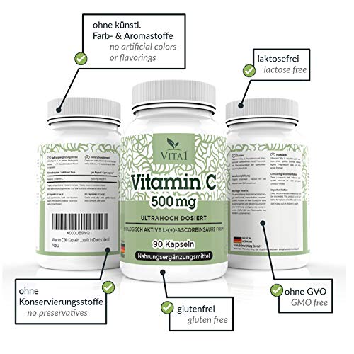 Quality Controlled – VITA1 Vitamin C Capsules are gluten-free in addition to free of chemicals, soy, GMO and preservatives.