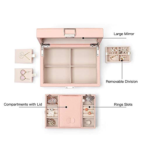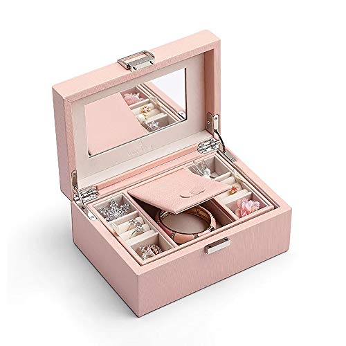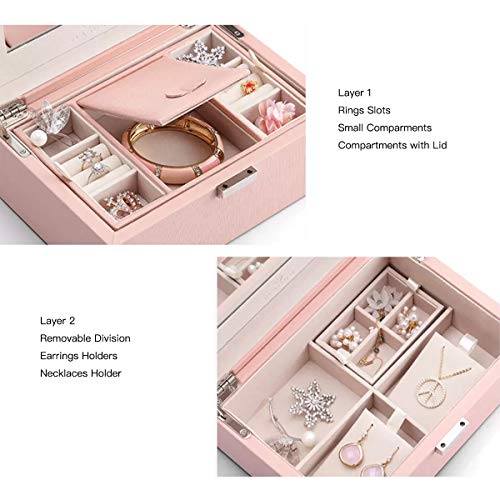 2-tray multi removable compartments design with big capacity for storage and organize your whole jewelries like necklaces, brackets, earrings, rings, watches, brooch and other small items. You just need this one and no worry about buying more other jewelry boxes on your other jewelries