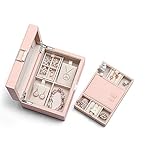 2-tray multi removable compartments design with big capacity for storage and organize your whole jewelries like necklaces, brackets, earrings, rings, watches, brooch and other small items. You just need this one and no worry about buying more other jewelry boxes on your other jewelries