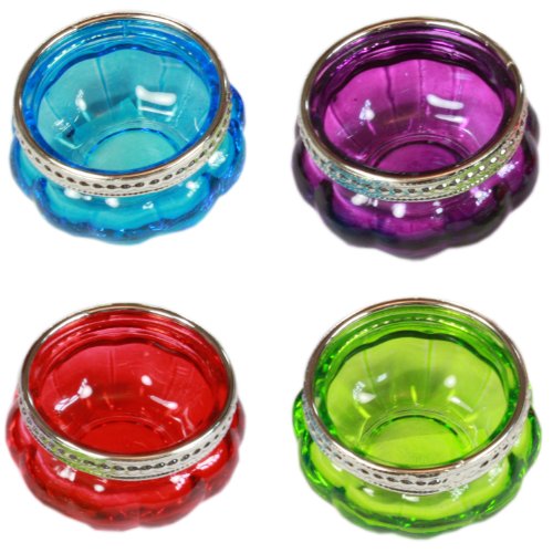 Wealthy purple, red, inexperienced and blue coloured glass T-Gentle holders with ornamental silver rim