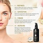 ✅ BENEFITS FOR YOUR BEAUTY – Retinol meets nourishing organic aloe vera, vitamin C, hyaluronic acid, coconut, & argan oil in this unique skin care combination. This created a face serum that visibly lessens wrinkles; protects your skin against free radicals; eases pigment spots; stimulates cell renewal in the upper skin layer and collagen production in lower layers; reduces age-related collagen destruction. The results: Soft, rejuvenated skin with a clear, blemish-free complexion.