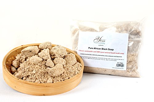 The Yess Essentials African Black Soap is produced by Co-operatives in Ejisu, Ghana from cocoa pod husk ashes and unrefined palm kernel oil. The cocoa pod husk is the shell of the cocoa fruit left over after removing the cocoa beans for chocolate or cocoa butter. The husk is dried to a precise texture under the hot African sun. It is then roasted in a clay oven at a constant heat in order to achieve a particular colour, texture and smell. The ash obtained is then extracted with water and the resulting aqueous solution is concentrated down to give the concentrated potash solution. The potash solution is then added to palm kernel oil and heated with stirring to obtain the soap. Contains no animal fats, chemicals, preservatives, colour enhancers and fragrances Black Soap Storage: The soap is placed in a cool dry area wrapped in a strong paper or stored in a polythene or paper lined bag. Black soap has natural glycerine so it will naturally absorb moisture from the air and become darker in colour and softer in texture when left exposed. Also being potash based soap, it will always go soft on exposure to atmospheric moisture. Shelf-Life: Black soap does not go bad. It can be used at anytime if stored properly. Due to the natural process of production, occasionally the soap might contain pieces of tree bark or grit. This will not affect the quality of the soap in any way.