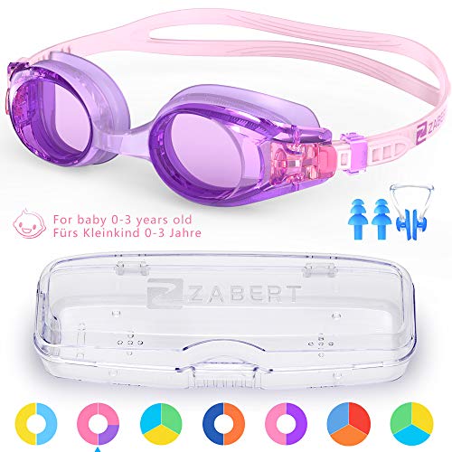 ❤ Especially designed kids swimming goggles for European childrens , a) ZABERT KX childrens swimming goggles for babies infant toddlers, sons and daughters children age 0-3 years old girls or boys..It is a real babies’ size goggles. b) Customized 3D ergonomic design model , perfect size , fit european children’s face beautifully , stay NO leak , more comfortable than others ; c) Durable anti-slip dual strap design. d) Quick to adjust fast-fit head strap and nose bridgs.